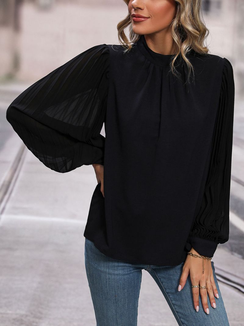 Blus Svart Crewneck Eleganta Långärmade Toppar För Kvinnor