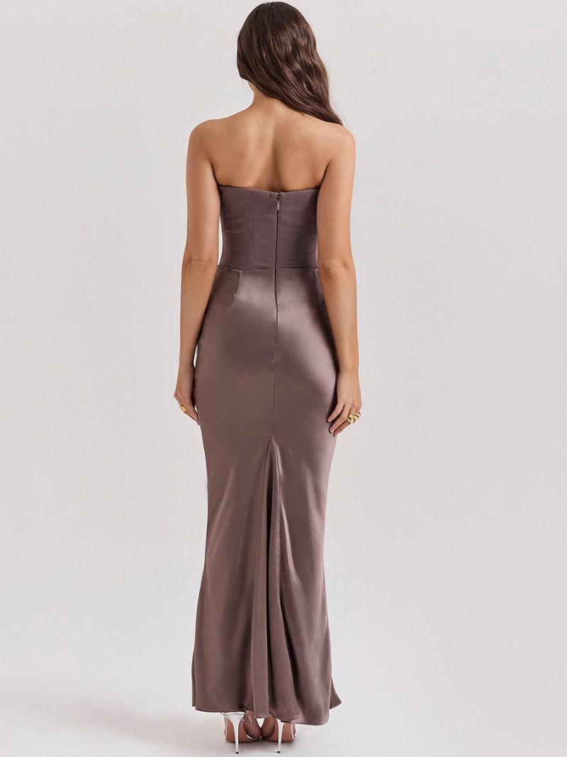 Bodycon-klänningar För Kvinnor Grå Ärmlösa Plisserade Chic Axelbandslös Oregelbunden Kroppsmedveten Klänning Slidklänning