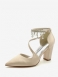 Bröllopsskor För Kvinnor Satin Champagne Pärlor Med Spetsiga Tår Chunky Heel Brudskor