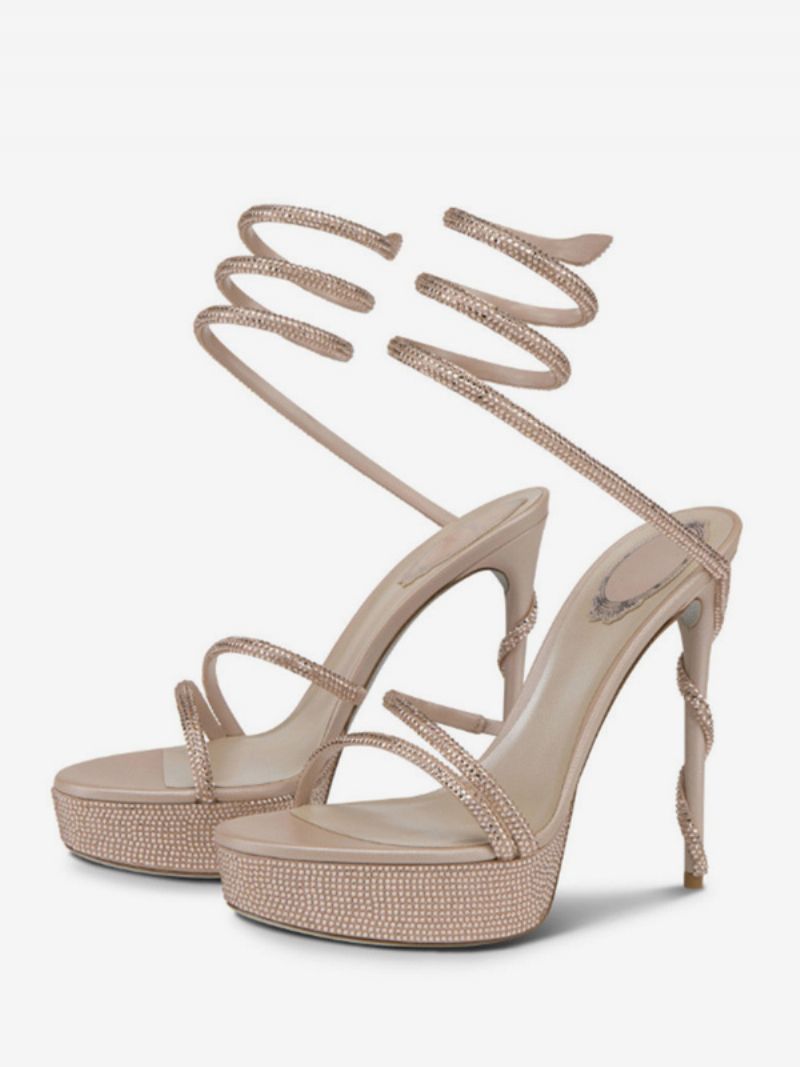 Dam Guld Party Skor Plattform Strass Strappy Högklackade Sandaler