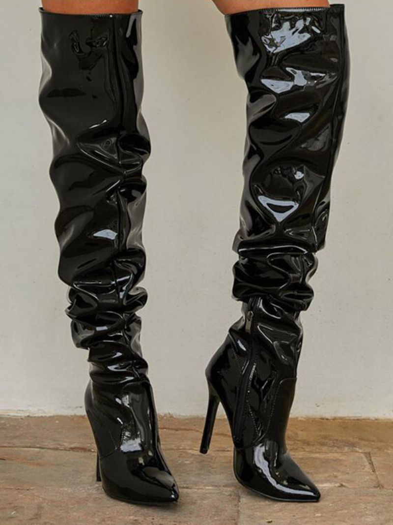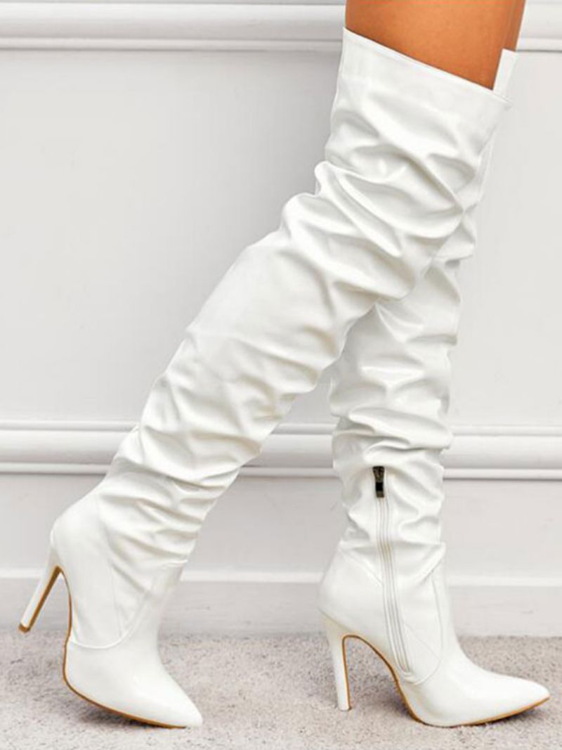 Dam Stilettklack Pu Ljust Läder Över Knästövlarna