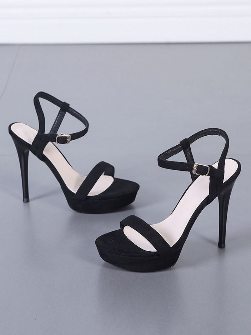 Damsandaler Med Stilettbal Och Klack I Svart Mocka