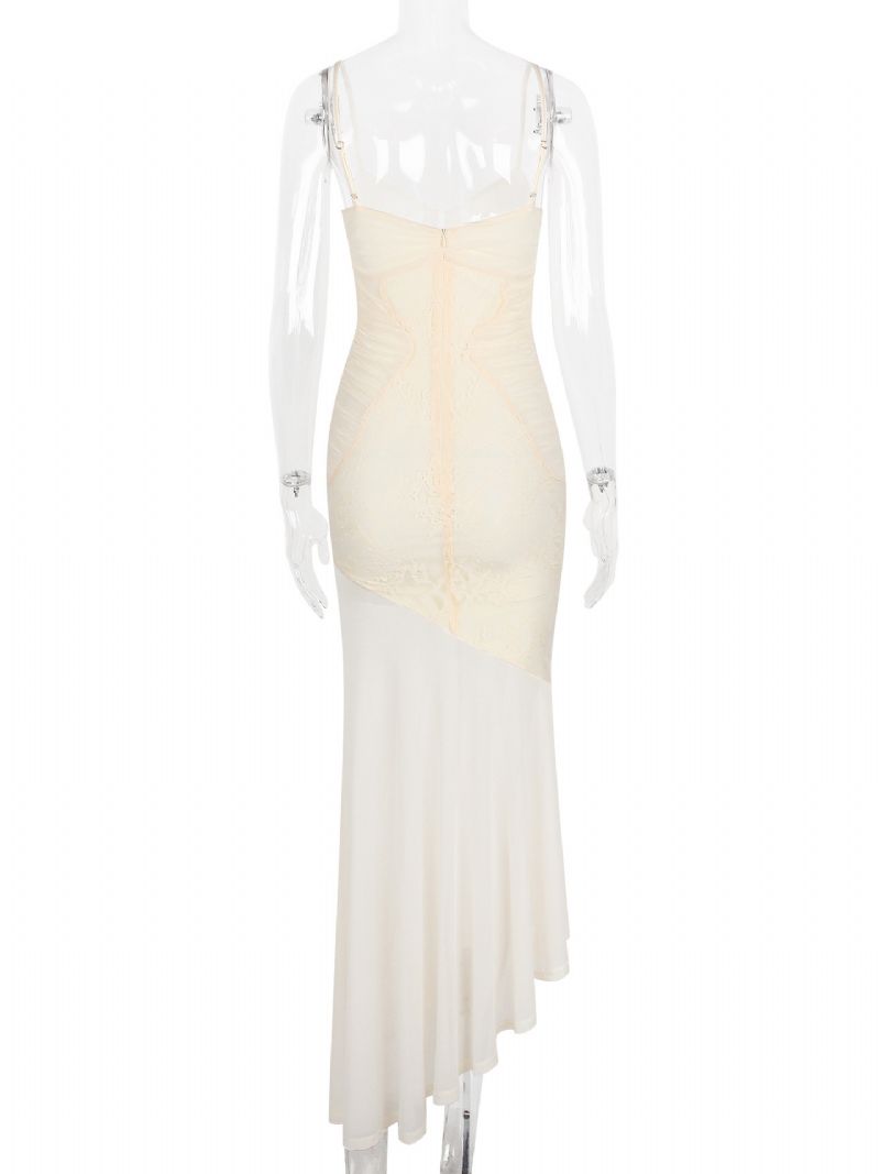Festklänningar För Kvinnor Ecru White Straps Hals Volanger Ärmlös Oregelbunden Halvformell Klänning