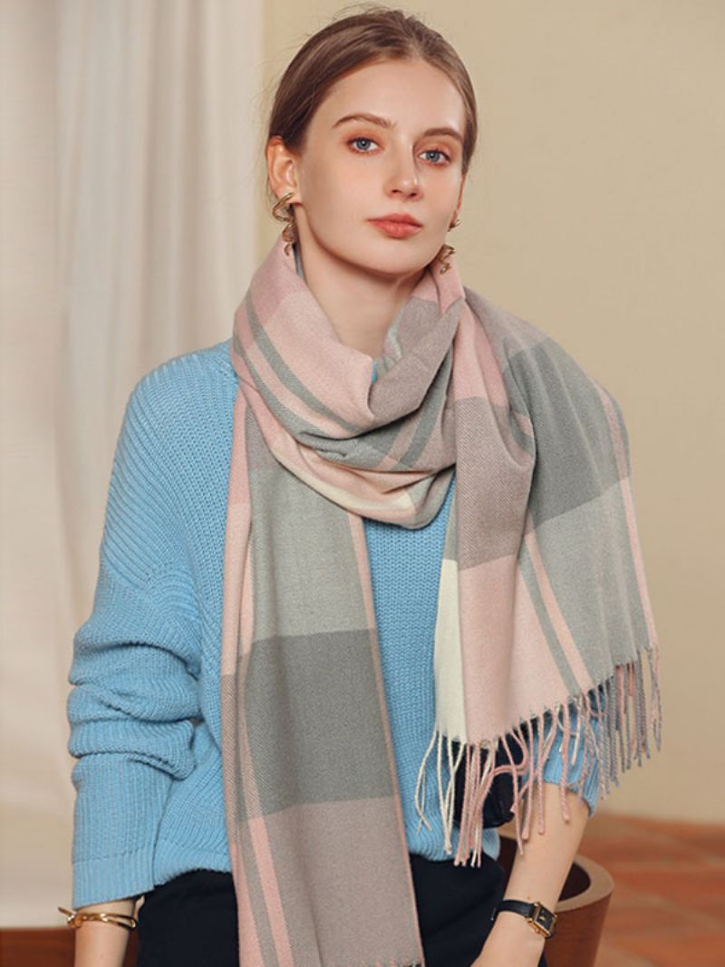 Halsduk För Kvinnor Pläd Fransar Fiber Vinter Varma Långa Halsdukar