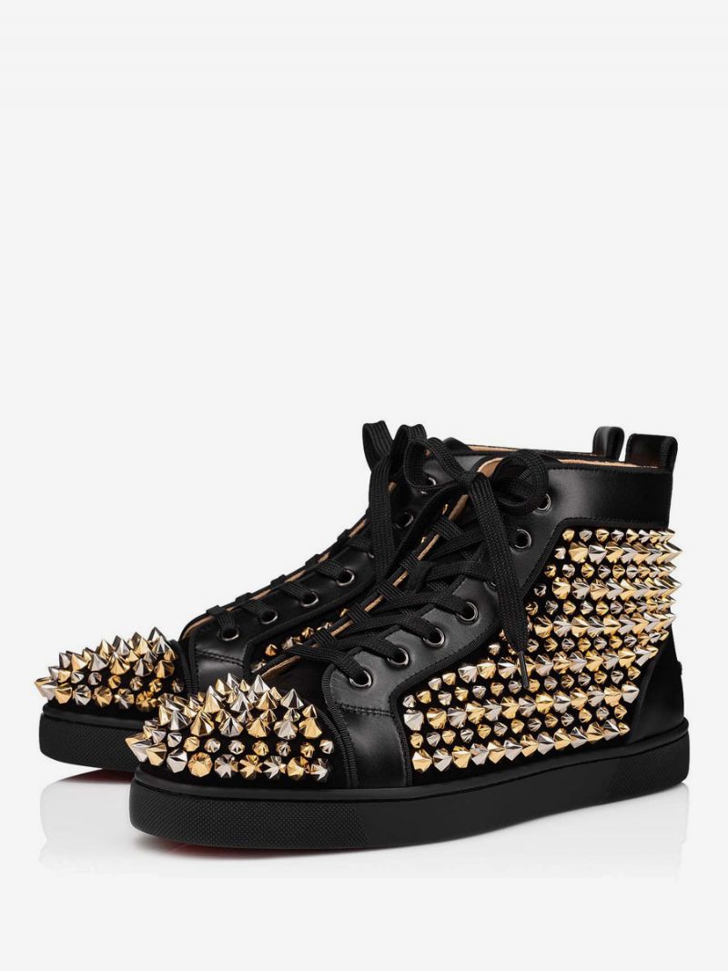 Herrskor Med Snörning Högtopp Prom Party Sneakers Skor Gold Spikes