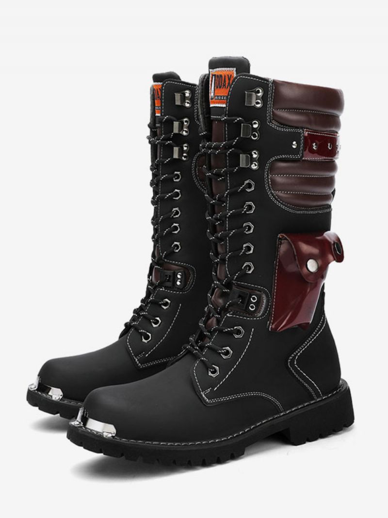 Herrstövlar Arbetsstövlar Pu-läder Rund Tå Stridsstövlar Spännen Steampunk Knähöga Stövlar