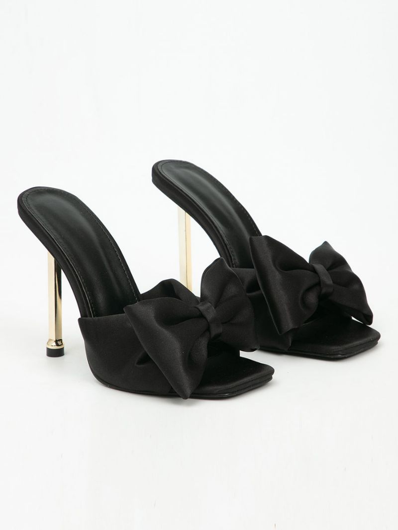 Klackade Mulor Bågar Stiletto Satin Övre Kricka Häl