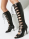 Knähöga Stövlar För Kvinnor Pee Toe Cut Out Snöra Högklackade Sandalstövlar