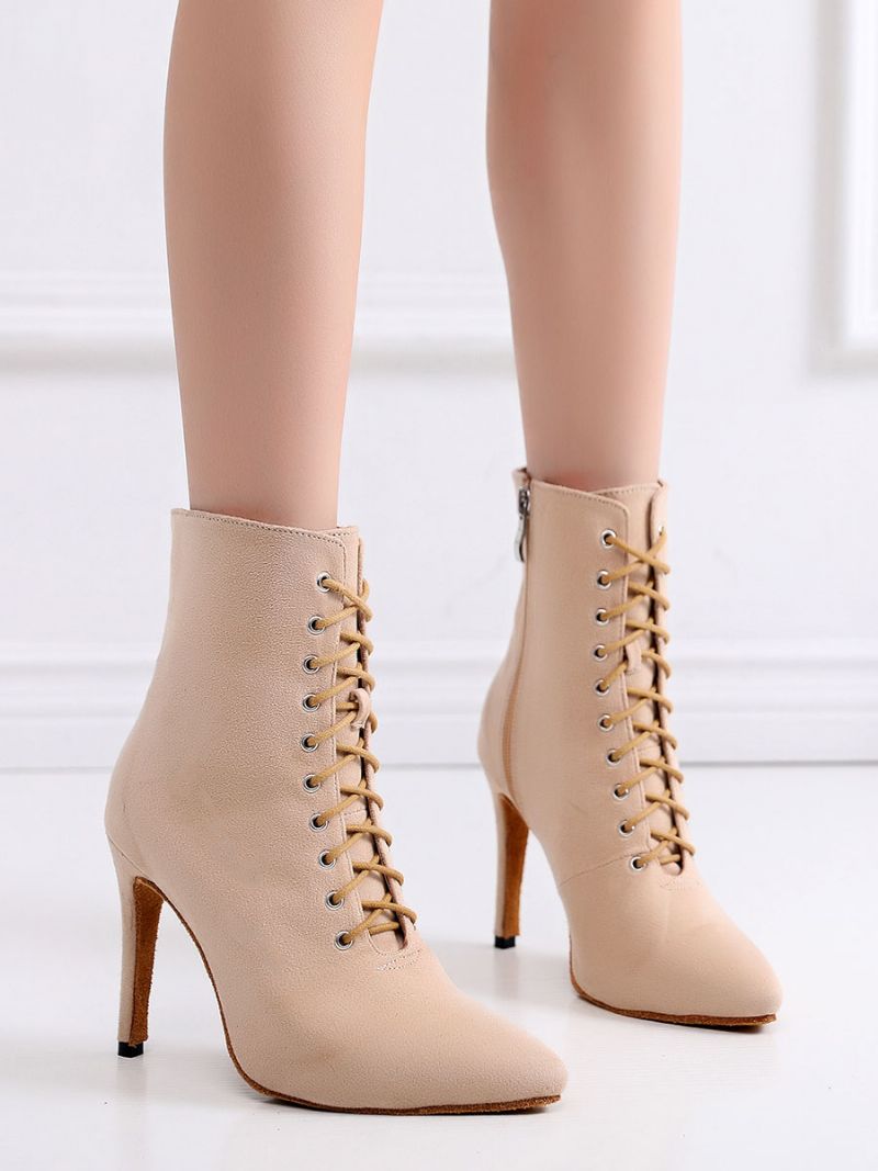 Kvinnor Med Snörning På Spetsiga Tå Stiletter Stövlar