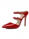 Kvinnor Svart Mules Spetsad Tå Spänne Detalj Högklackade Skor