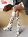 Kvinnors Blommuttrycksblock Hälplattform Knähöga Stövlar