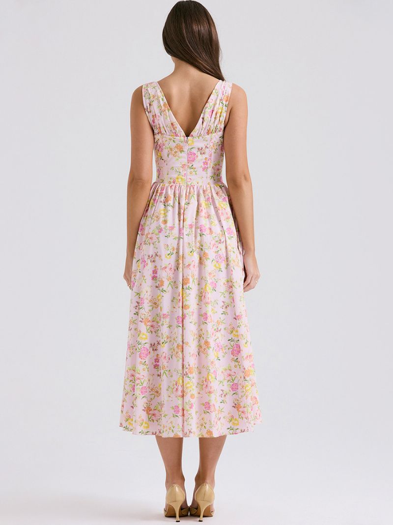 Kvinnors Festklänningar Rosa Rosetter Ärmlösa Blommönster Oregelbunden Halvformell Klänning