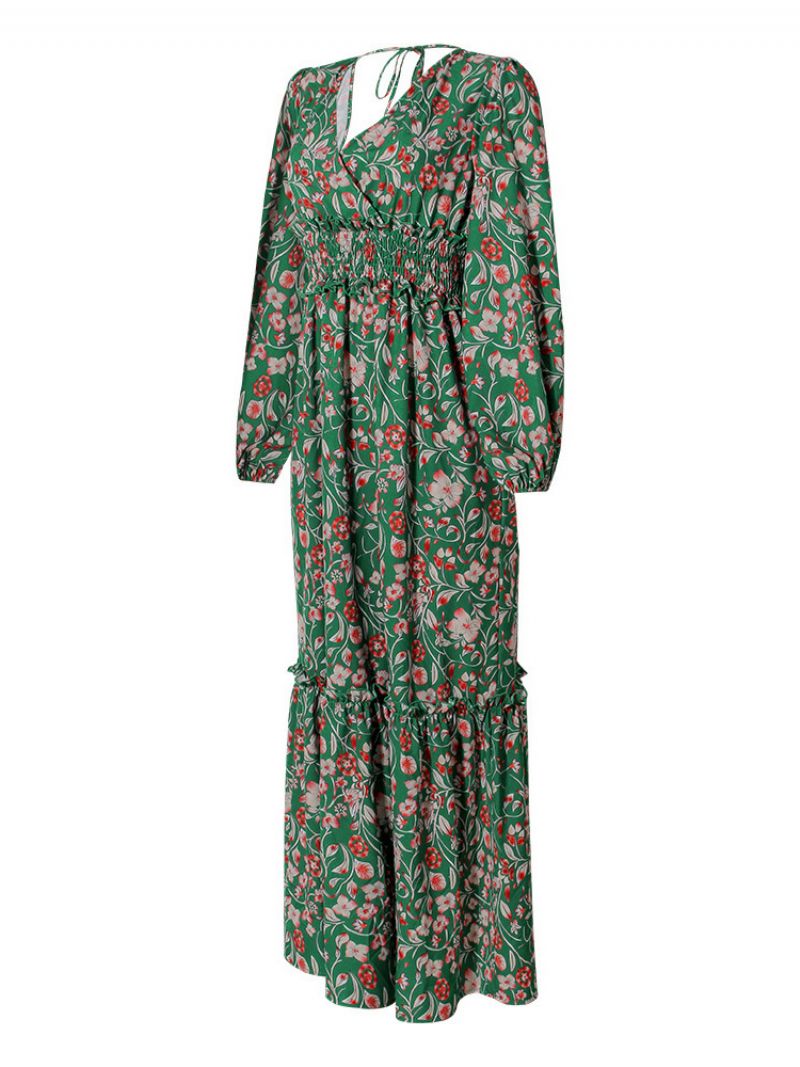 Kvinnors Maxiklänning V-hals Långa Ärmar Casual Blommortryck Golvlängd Klänning