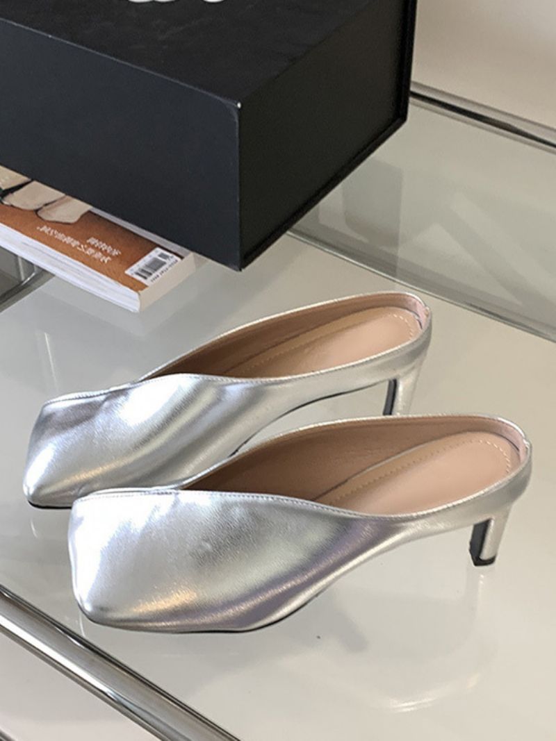 Kvinnors Metalliska Mulor Champagne Stiletto Heel Mules