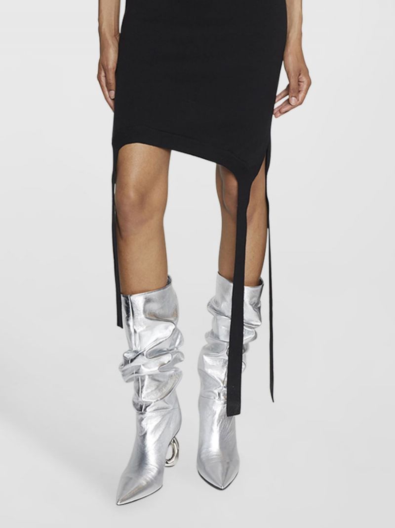 Kvinnors Mid Kalvstövlar Silver Spetsig Tå Specialformade Klackstövlar