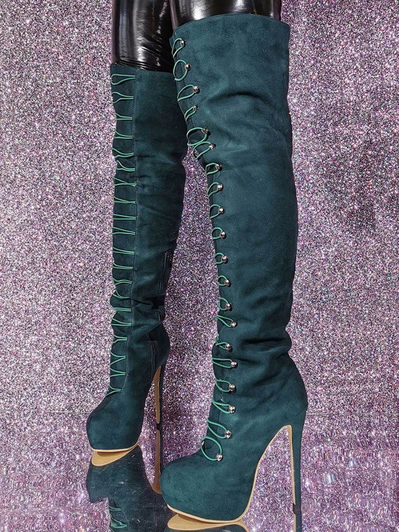 Kvinnors Tight Höga Stövlar Rund Toe Stilettklack Micro Mocka Ovandel