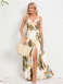 Kvinnors Tryckta Klänning V-hals Ärmlös Bälte Hög Slits Resort Casual Maxiklänningar