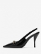 Svart Slingback Pumps Kvinnor Spetsad Tå Kedja Detalj Höga Klackar
