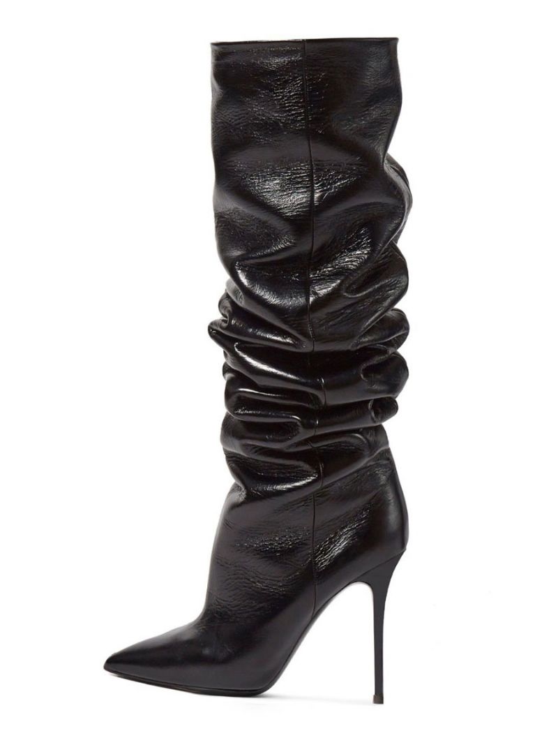 Svarta Slouch-stövlar Med Spetsad Tå Stilettklack Mid Calf-stövlar För Kvinnor